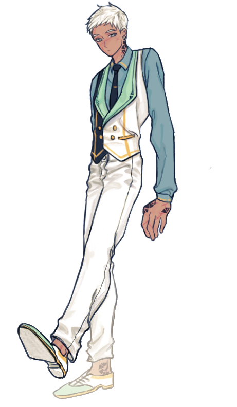 적당히 편한 세미정장. 최근에 좋아하는 컬러는 민트색이다. 지정성별과 무관한 차림새는 본인의 기분에 따라 이따금씩 극과 극을 달릴 때가 있다. 176cm, 큰 키에 말라보여도 뼈대가 단단하다. 표정 없어 보이는 가라앉은 얼굴에 백색의 눈동자, 그보다 약간 더 명도가 짙은 짧은 머리칼. 대조적으로 어두운 적색의 피부. 인도, 혹은 중동쪽의 외견에 가깝다.
